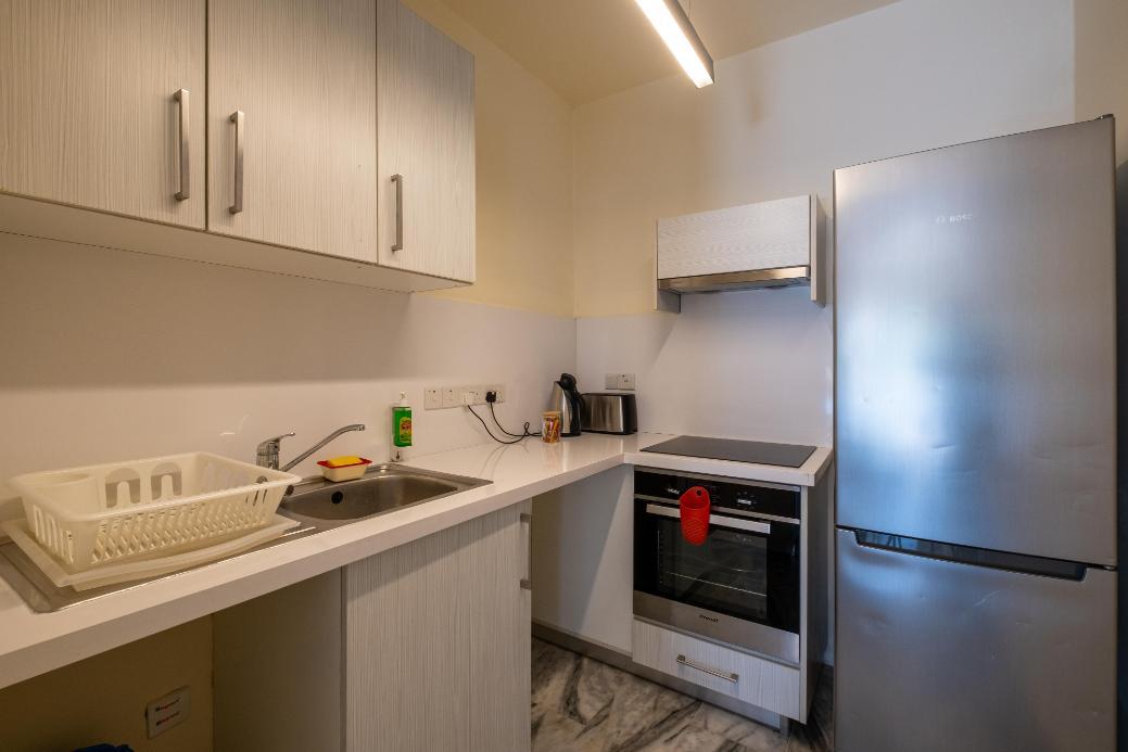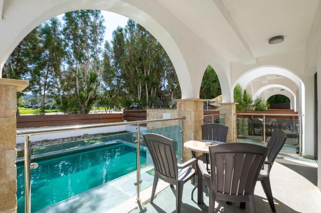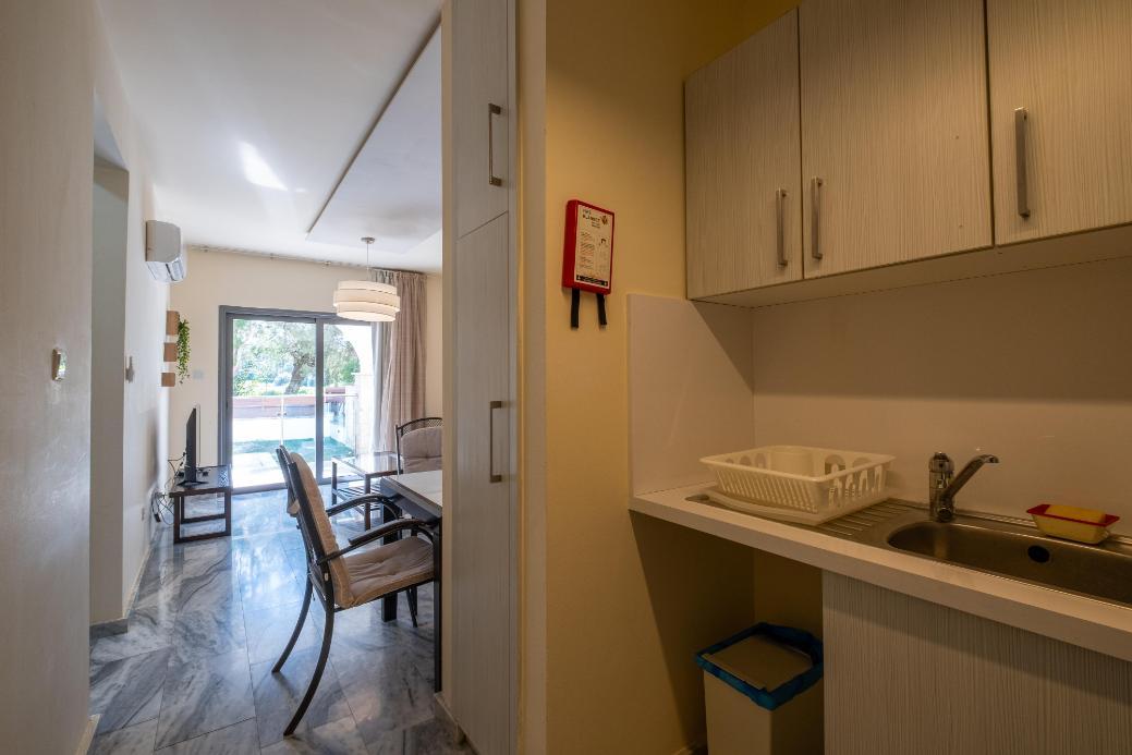 The apartment has a covered area of 56sqm and covered veranda of 9sqm. It is situated on the ground floor of Block B. It consists of an open plan area with kitchenette, sitting area, two bedrooms, a bathroom with toilet and a private pool.